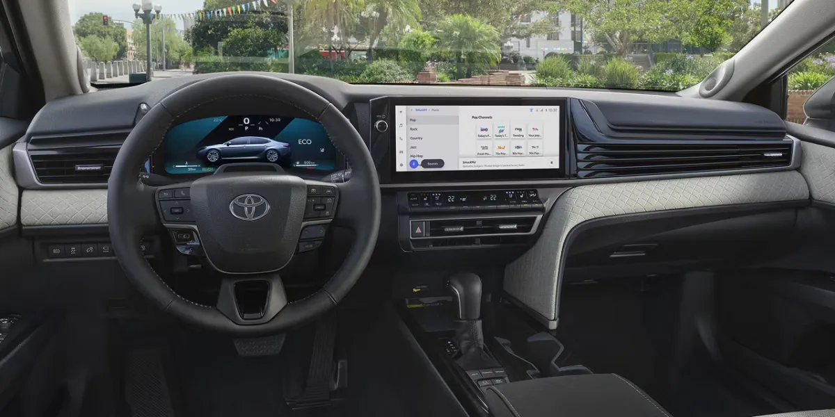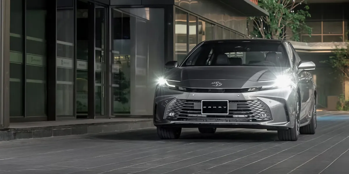 Cụm đèn trước LED trên Toyota Camry 2026 được thiết kế hoàn toàn mới, mang phong thái mạnh mẽ và tinh gọn hơn. Dải LED sắc nét được bố trí theo chiều ngang, tăng độ nhận diện và tạo điểm nhấn công nghệ cho phần đầu xe. Hệ thống chiếu sáng hiệu suất cao giúp mở rộng tầm nhìn, đảm bảo khả năng quan sát rõ ràng trong mọi điều kiện, từ đô thị đến đường trường, mang lại trải nghiệm lái an toàn và tự tin hơn.