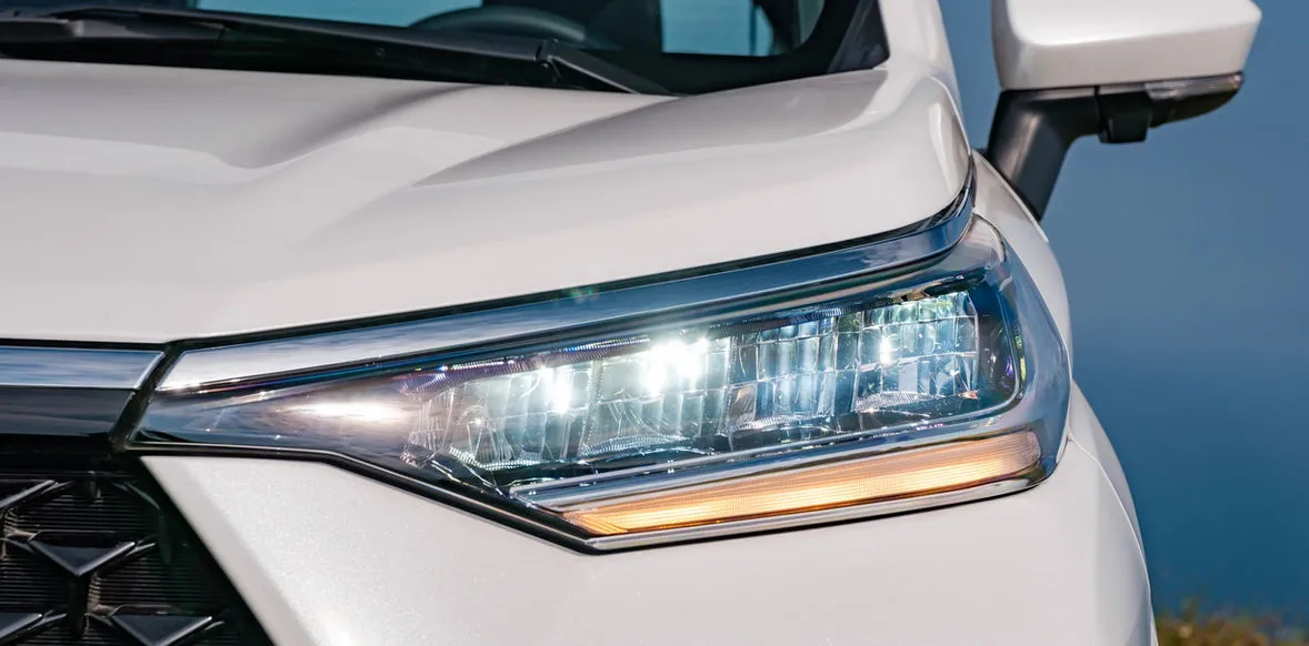 Cụm đèn trước Toyota Veloz Cross 2026 được thiết kế sắc sảo với phong cách hiện đại, tạo điểm nhấn nổi bật cho phần đầu xe. Đèn chiếu sáng sử dụng công nghệ LED toàn phần, cho khả năng chiếu sáng mạnh mẽ, rõ nét và tiết kiệm năng lượng, hỗ trợ tối ưu khi di chuyển trong điều kiện thiếu sáng.