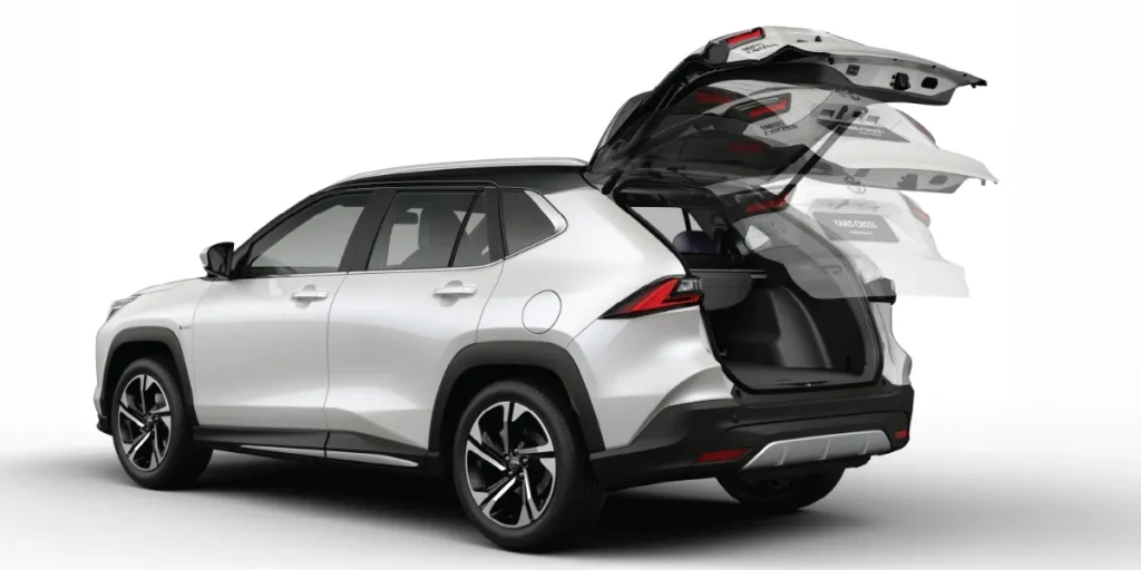 Toyota Yaris Cross Hybrid 2025 được trang bị cốp sau đóng/mở bằng điện kết hợp tính năng mở cốp rảnh tay, giúp người dùng dễ dàng tiếp cận khoang hành lý mà không cần phải chạm tay trực tiếp. Chỉ cần đưa chân vào vùng cảm ứng dưới cản sau, cốp sẽ tự động mở, đặc biệt hữu ích khi bạn đang mang theo nhiều đồ đạc.