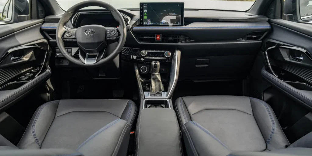Toyota Yaris Cross 2025 sở hữu khoang nội thất rộng rãi và hiện đại, được thiết kế tối ưu cho sự tiện nghi và tính thực dụng trong quá trình sử dụng hằng ngày. Bảng điều khiển trung tâm được bố trí hướng về phía người lái, tạo cảm giác trực quan và dễ thao tác. Các chi tiết bên trong xe được hoàn thiện bằng vật liệu chất lượng cao, mang lại cảm giác sang trọng và tinh tế hơn trong phân khúc SUV cỡ B.