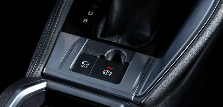 Toyota Yaris Cross 2025 được trang bị phanh đỗ điện tử (EPB), cho phép kích hoạt và nhả phanh chỉ bằng thao tác nút bấm, thay thế hoàn toàn cần phanh tay truyền thống. Hệ thống này giúp xe tự động khóa phanh khi dừng, đỗ và ngăn chặn các tình huống mất an toàn do quên kéo phanh hoặc kéo phanh chưa đủ lực.