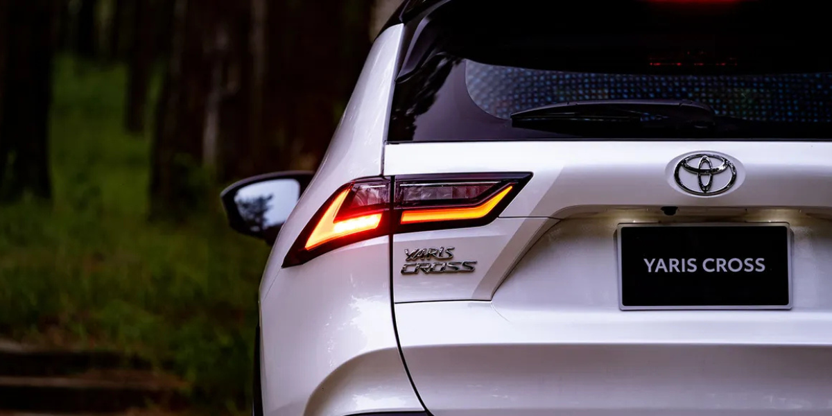 Cụm đèn sau của Toyota Yaris Cross 2025 được thiết kế sắc nét với dải đèn LED hiện đại, mang lại khả năng chiếu sáng rõ ràng và ổn định khi di chuyển vào ban đêm. Thiết kế đèn được kéo ngang sang hai bên giúp tăng độ nhận diện, đồng thời tạo cảm giác rộng và bề thế hơn cho phần đuôi xe. Nhờ hệ thống chiếu sáng tối ưu, Yaris Cross 2025 mang đến sự an tâm và an toàn cho người lái trên mọi hành trình.